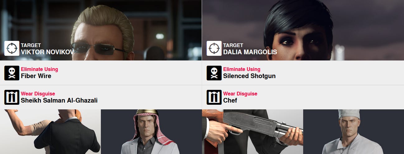 Hitman Roulette (or simply Roulette) is a community game mode in the Hitman series, where unique challenges (known as roulette spins) can be generated using various randomizers such as https://roulette.hitmaps.com/. Each target in a given mission is assigned a different kill method (ranging from firearms to accidents) and a disguise available on the map (or Agent 47’s own suit). While Roulette can be played in many ways, the usual goal is to complete a spin with a 5-star Silent Assassin rating as quickly as possible. You can read more about the basics of Roulette here, or visit the Roulette Guides page for learning material.